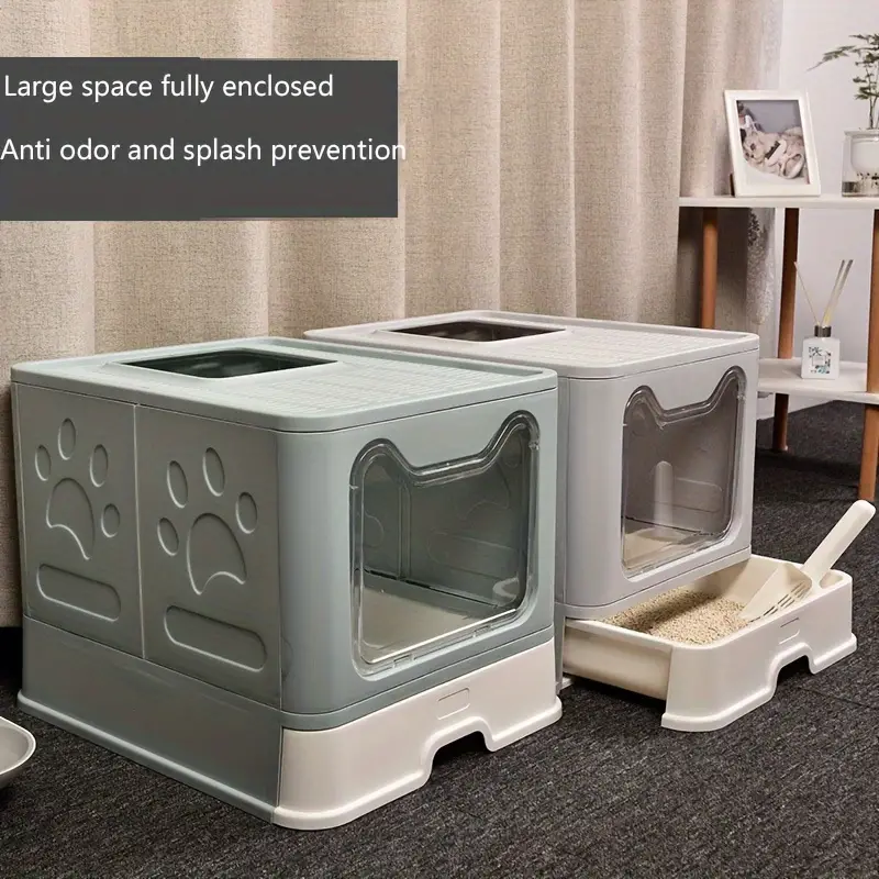 Bac à Litière pour Chat Fermé Anti-Odeur avec Tiroir – Conception Anti-Éclaboussures, Entrée et Sortie Faciles pour Chats.